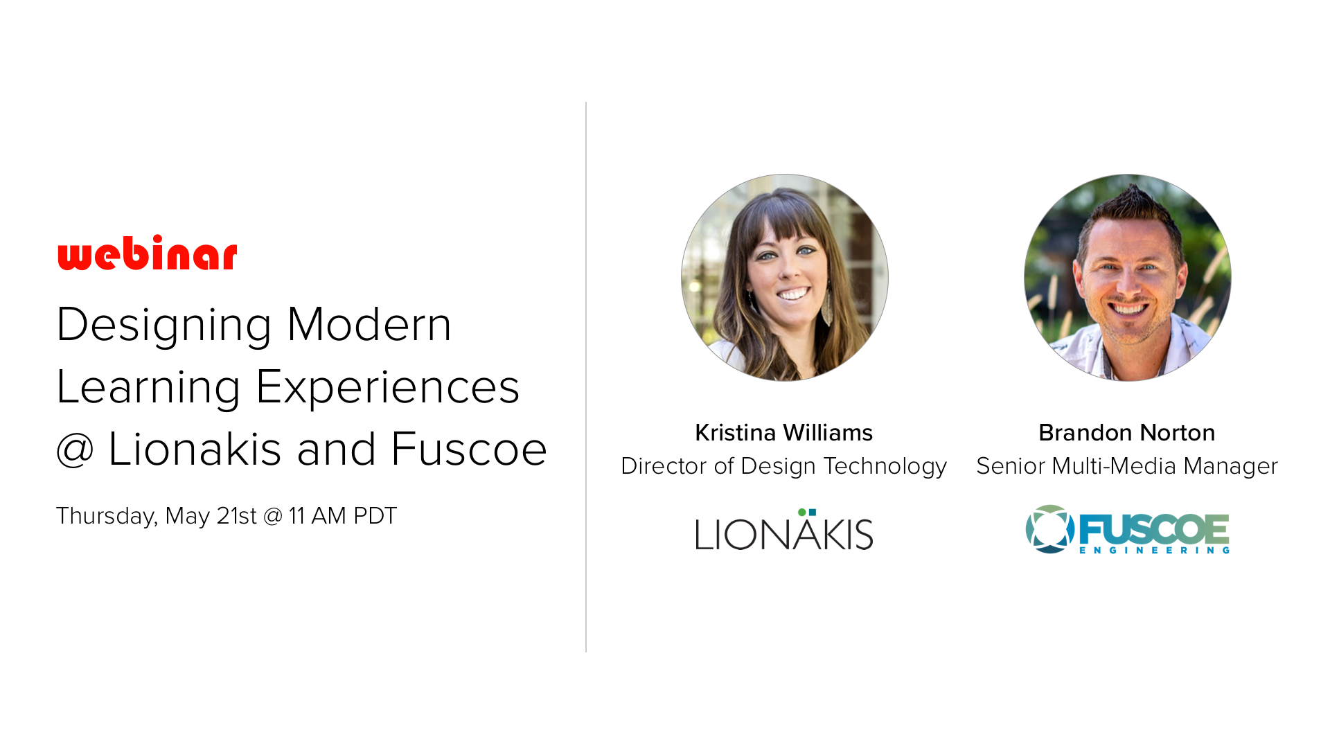 In this webinar, Kristina Williams, Director of Design Technology at Lionakis, and Brandon Norton, Senior Multi-Media Manager at Fuscoe Engineering, will share how their firms are designing modern learning experiences that take advantage of this new paradigm.
