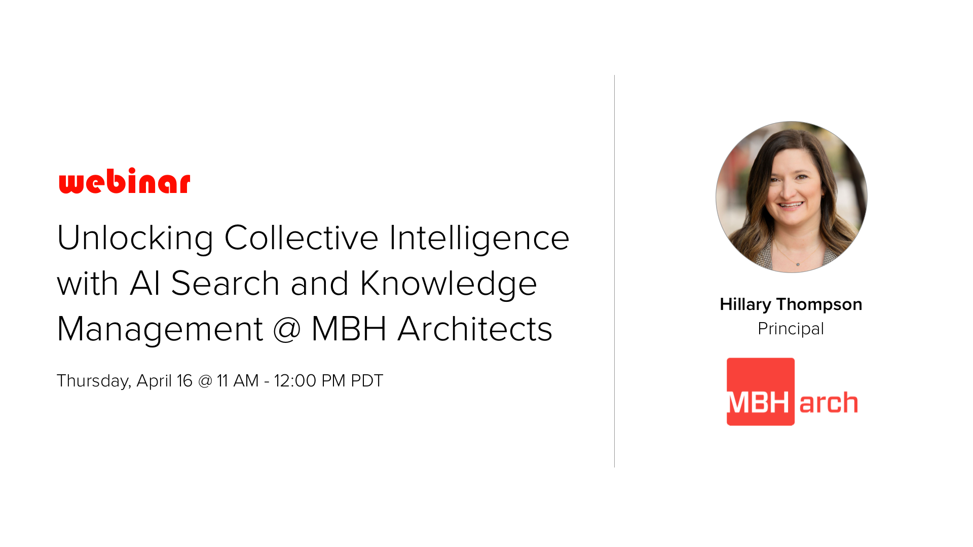In this webinar, Hillary Thompson, Principal at MBH Architects, will share how MBH is deliberately investing in its knowledge foundation to enable better AI outcomes, improve access to expertise, and create a continuous pipeline connecting project experience, institutional knowledge, and learning.