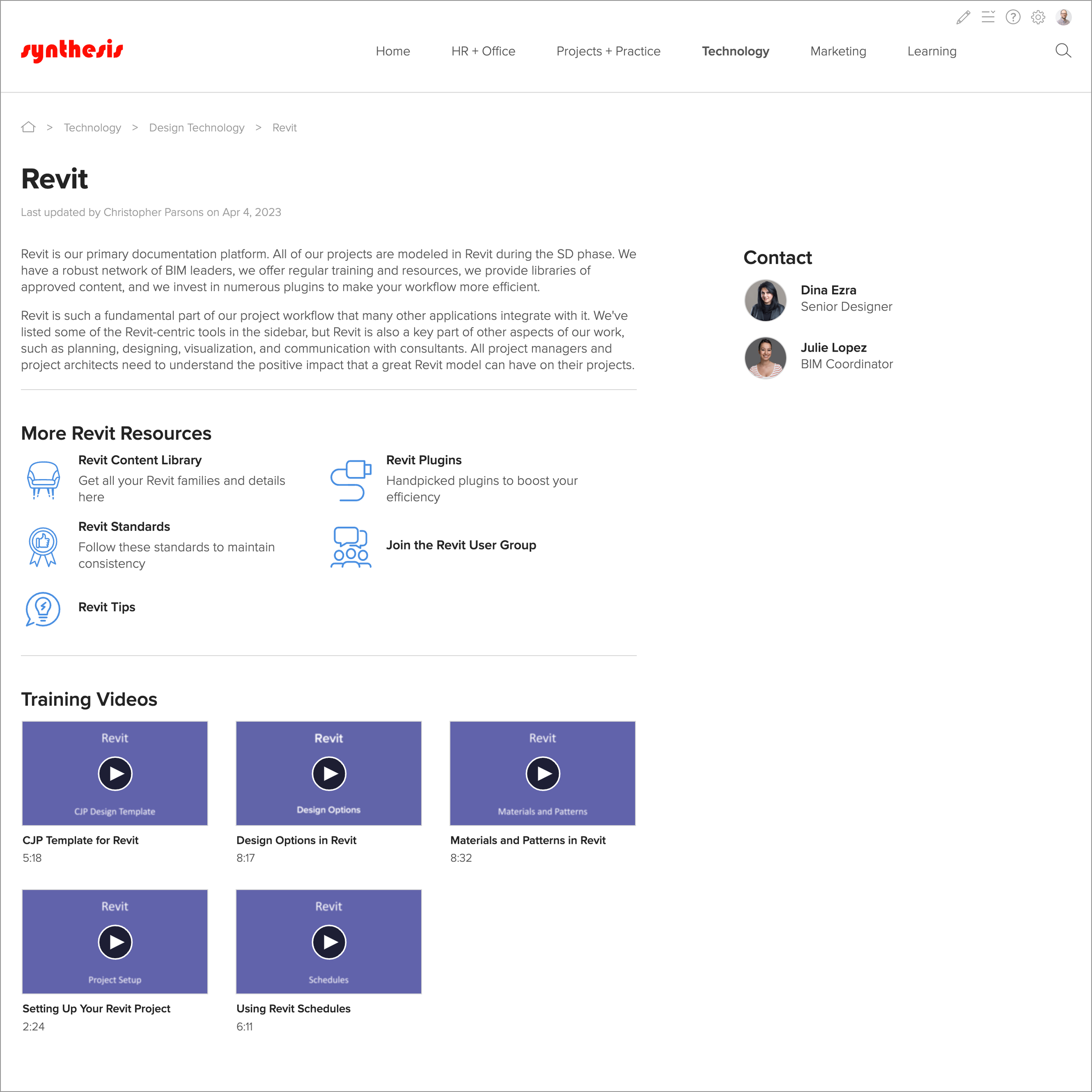 Because Synthesis LMS is fully integrated with our Synthesis Intranet solution, employees have one trusted platform where they can access and search firmwide knowledge, training, and resources.